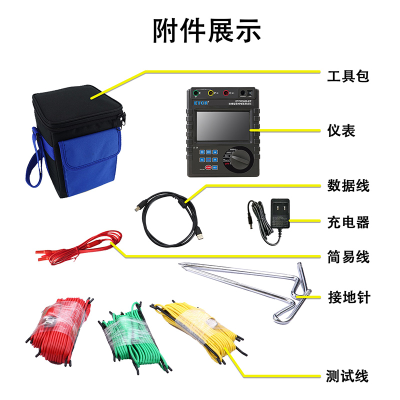 ![]() | ETCR3000B | 0.00Ω~30.00kΩ | 0.00Ωm~9000kΩm | AC 0V~600V | 儲(chǔ)存功能;USB通信 |