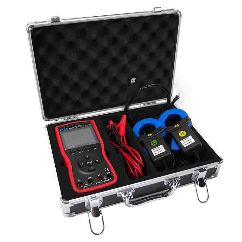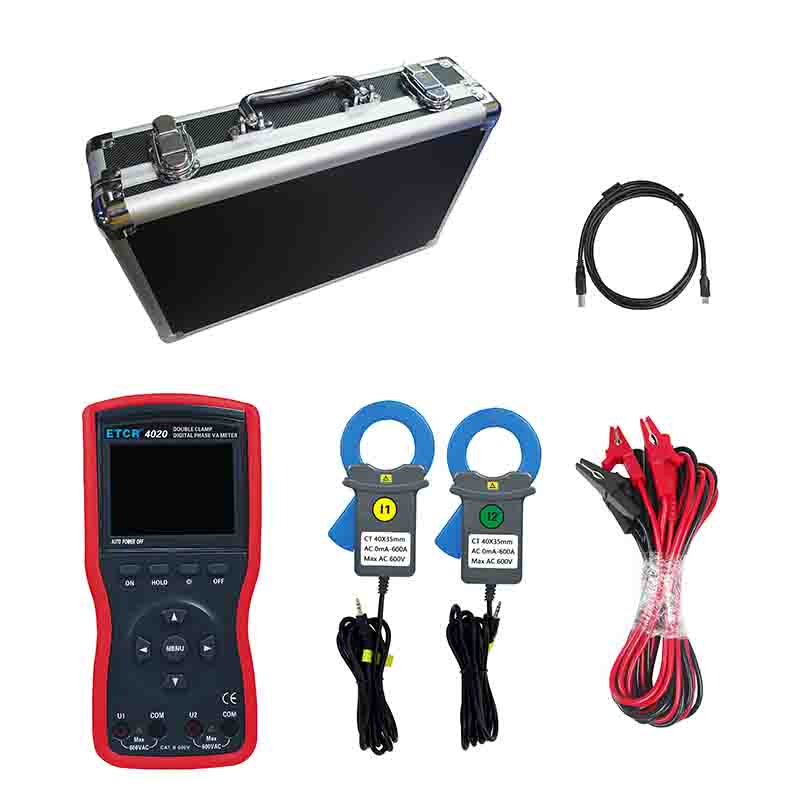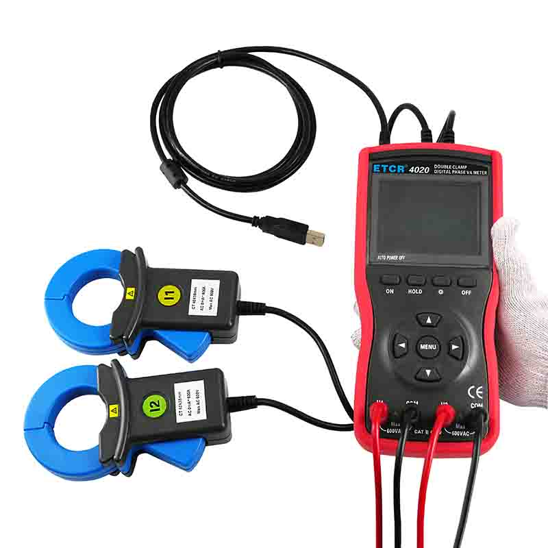 ETCR4020大口徑雙鉗數(shù)字相位伏安表又稱單相相位伏安表、數(shù)字相位伏安表、伏安相位儀、相位測量儀,用于測量兩路交流電壓、電流、電壓間相位、電流間相位、電壓電流間相位、頻率、相序、有功功率、無功功率、視在功率、功率因數(shù)等,判別變壓器接線組別、感性、容性電路,測試二次回路和母差保護系統(tǒng),讀出差動保護各組CT之間的相位關系,檢查電度表的接線正確與否,檢修線路設備等,為用電檢查人員提供一種安全、準確、便捷的新型電力儀表。尤其適用于電能計費系統(tǒng)及繼電保護系統(tǒng),其供電營銷部門的電能計量、用電檢查、電力稽查,生技部門的裝表接電 、繼電保護、差動檢測、啟動試驗、變電檢修,或電力實訓、技能比武等。