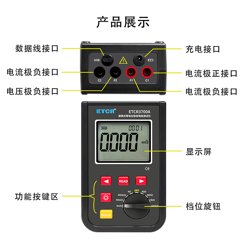 ETCR3700A等電位聯(lián)接電阻測試儀又稱直流低電阻計、直流電阻測試儀,歐姆計,儀表采用微處理機技術(shù),四線法測試,安全精密可靠。主要用于測量電纜的導(dǎo)線電阻,開關(guān)、接插件、繼電器的接觸電阻,線圈、電動機、小型變壓器繞組的直流低電阻,金屬鉚接件金屬構(gòu)件之間,地網(wǎng)地極連接導(dǎo)體間的聯(lián)接電阻。儀表廣泛應(yīng)用于個工礦企業(yè)、建筑監(jiān)測監(jiān)理公司、建筑施工單位、防雷公司、電力部門、船舶機車廠等。