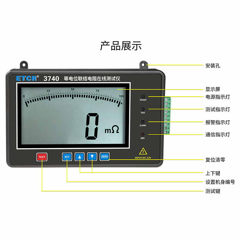 ![]() | ETCR3740 | 1mΩ~1000Ω | 1000mΩ、10Ω、100Ω、1000Ω | 1A MAX | RS485、4G通信 |