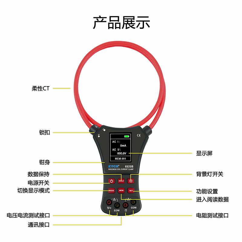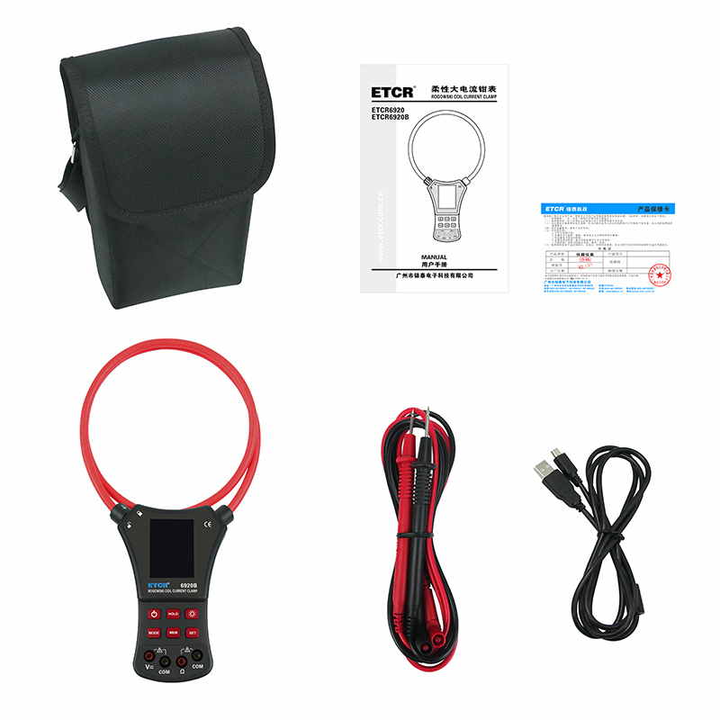 ETCR6920B柔性電流鉗表又名柔性線圈鉗表、超大電流鉗表、羅氏線圈電流鉗表、洛氏線圈電流鉗表,用于交流電流測(cè)試、電壓測(cè)試、電阻測(cè)試、通斷測(cè)試。柔性線圈無(wú)任何裸露金屬導(dǎo)體,體積小、重量輕、柔軟靈活,特別適合大尺寸導(dǎo)體、狹窄環(huán)境和排線密集的場(chǎng)所,可用于信號(hào)嚴(yán)重畸變的工業(yè)環(huán)境電流測(cè)試。廣泛適用于電力、通信、氣象、鐵路、油田、建筑、計(jì)量、科研教學(xué)單位、工礦企業(yè)等領(lǐng)域。