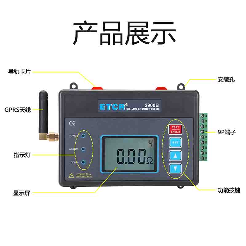 ETCR2900B在線接地電阻測試儀帶有LCD顯示,可在現(xiàn)場查看接地電阻值,可以通過儀表按鍵設(shè)置報警臨界值,可設(shè)置監(jiān)測間隔時間,并具有聲光報警指示,測試儀帶有導(dǎo)軌安裝結(jié)構(gòu),安裝特別方便。