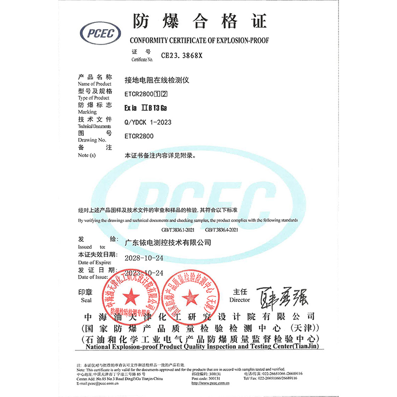 檢測儀已通過防爆認證,其安全防爆認證參數整機滿足GB3836.1-2021和GB3836.4-2021標準相關要求。其防爆標志為Ex ia IIB T3 Ga、 Ex ib IIC T4 Gb。防爆合格證號:CE23.3868X、EETI25.0421X。它可應用于相應的易燃易爆環(huán)境中。