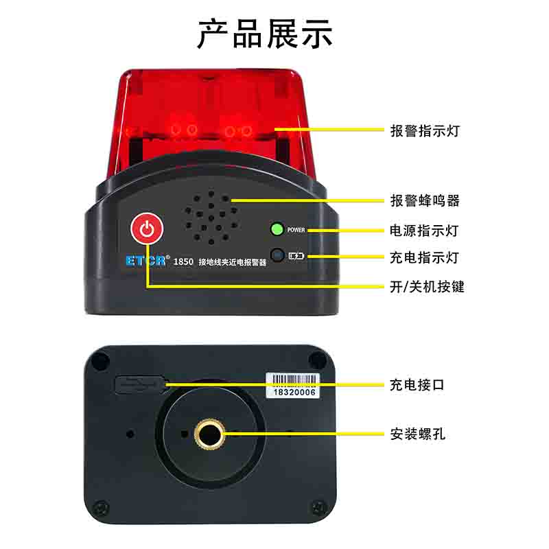 ETCR1850接地線夾近電報(bào)警器又稱帶電體近電報(bào)警器,為電力作業(yè)人員提供一款安全、實(shí)用、便捷的新型近電報(bào)警裝置。電力作業(yè)人員在對電力電纜及設(shè)備進(jìn)行停電維護(hù)時,由于有感應(yīng)電壓或其它原因,為保障作業(yè)人員的安全需使用接地線夾對電纜線或設(shè)備進(jìn)行接地。報(bào)警器安裝在接地線夾或絕緣桿上,當(dāng)電纜線或設(shè)備帶電時,報(bào)警器觸發(fā)報(bào)警功能發(fā)出聲光報(bào)警,提醒作業(yè)人員注意安全,避免發(fā)生觸電事故,為作業(yè)人員提供更加安全的保障。