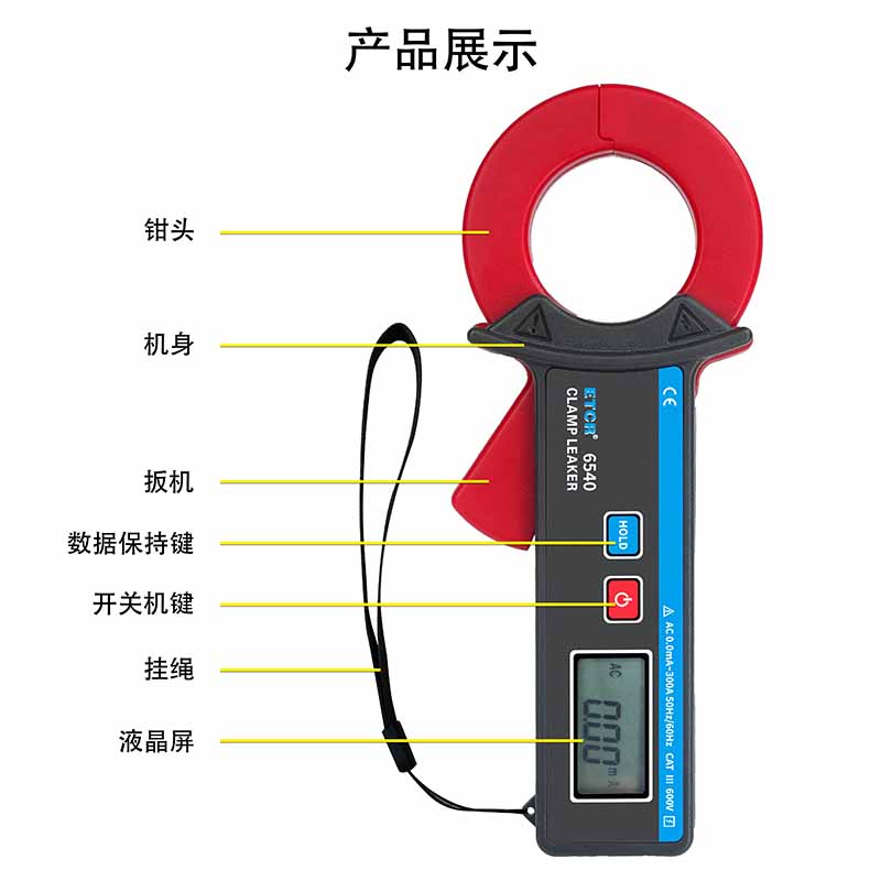 ETCR6540迷你型鉗形漏電流表具有峰值保持、數(shù)據(jù)保持、數(shù)據(jù)存儲(chǔ)等功能。