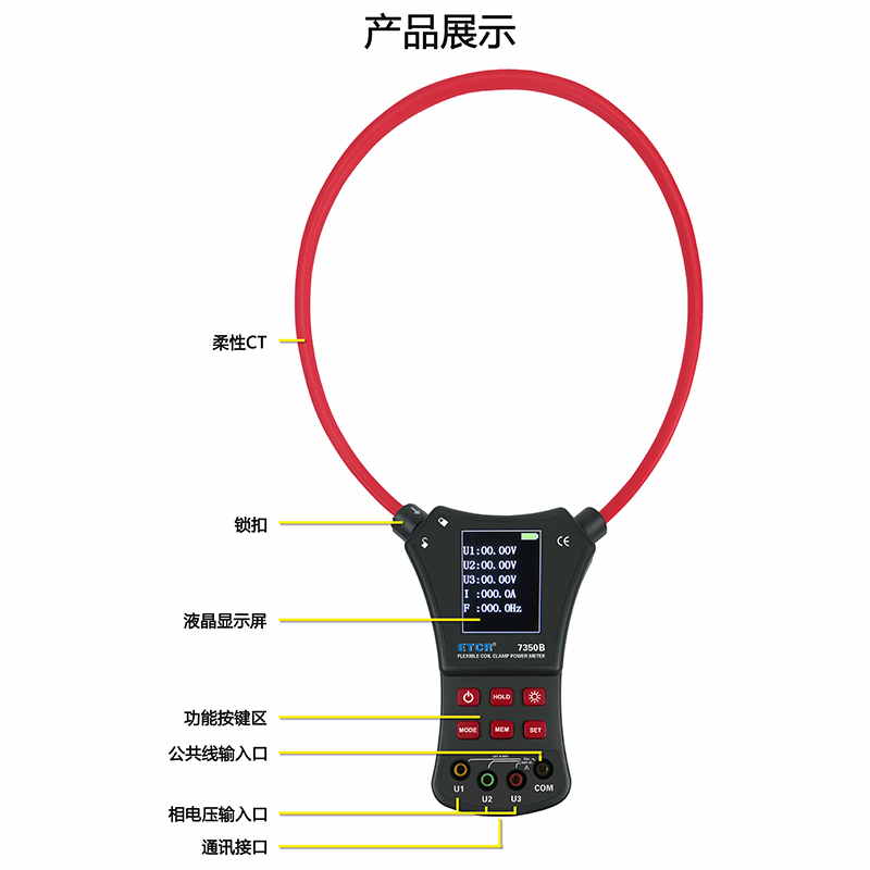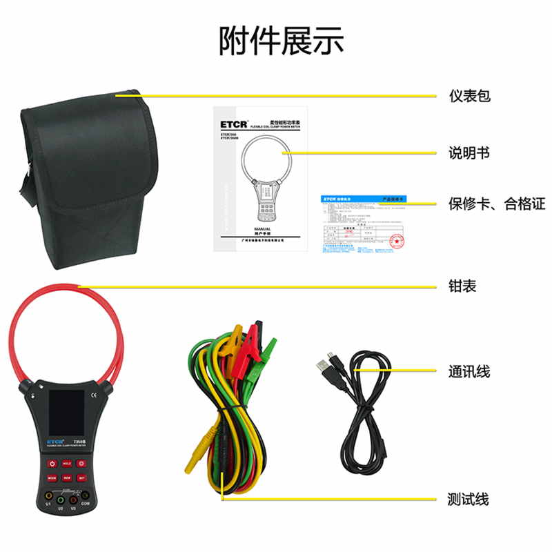 ETCR7350B柔性鉗形功率表AC 0.0A~6000A0.00V~600V0.0°~360°Φ300mm200組