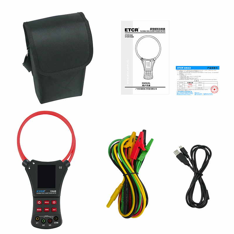ETCR7350B柔性鉗形功率表又名羅氏線圈功率表、洛氏線圈功率表,用于現(xiàn)場測量三相交流電壓、電流、電壓間相位、電壓電流間相位、頻率、相序、電能、有功功率、無功功率、視在功率、功率因數(shù)、總功率等電能參數(shù)。還能用于判別變壓器接線組別、感性、容性電路,讀出差動保護各組CT之間的相位關(guān)系,檢查電度表的接線正確與否,檢修線路設(shè)備等,為用電檢查人員提供一種安全、準確、便捷的新型電力儀表。
