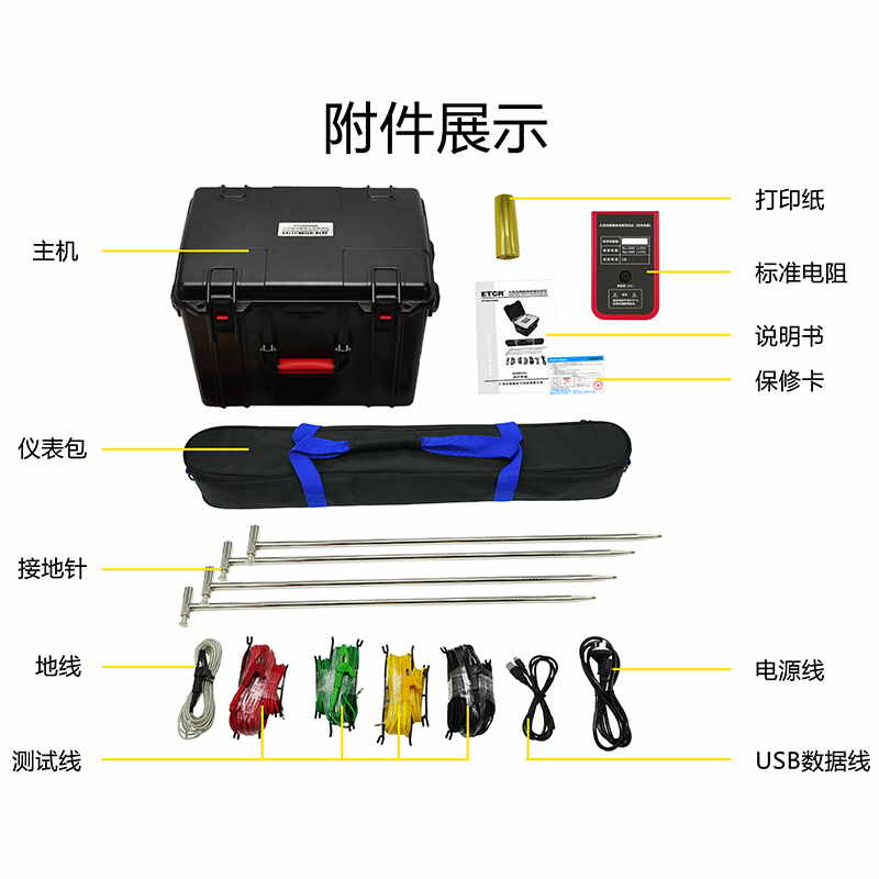 測(cè)量大型接地裝置接地電阻,接地導(dǎo)通,土壤電阻率,跨步電壓,接觸電壓,地表電位梯度等。