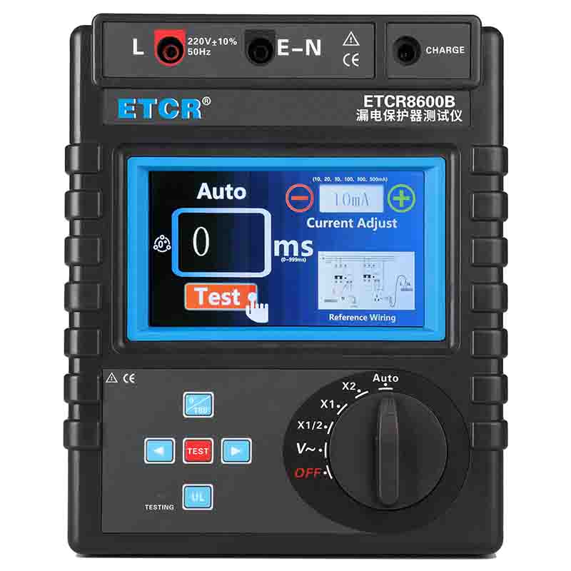 | ETCR8600B漏電保護(hù)器測試儀 | 5mA~1000mA,十六檔 | 0ms~999ms | AC 0~600V | 觸摸彩屏 | 鋰電池 |