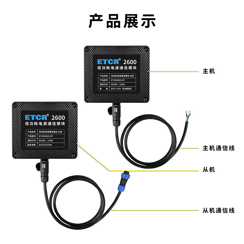 ETCR2600低功耗電源通信模塊由主機(jī)、從機(jī)、通信線組成,主機(jī)與從機(jī)間通過LORA通信組建網(wǎng)絡(luò),主機(jī)集中接收現(xiàn)場各個(gè)從機(jī)的數(shù)據(jù),通過RS485通信將數(shù)據(jù)包主動上報(bào),實(shí)現(xiàn)對現(xiàn)場設(shè)備的遠(yuǎn)程在線監(jiān)測。從機(jī)通過RS485采集檢測儀數(shù)據(jù)同時(shí)為檢測儀提供電源,解決現(xiàn)場難以供電的問題,一個(gè)主機(jī)可同時(shí)與1~200個(gè)從機(jī)通信。