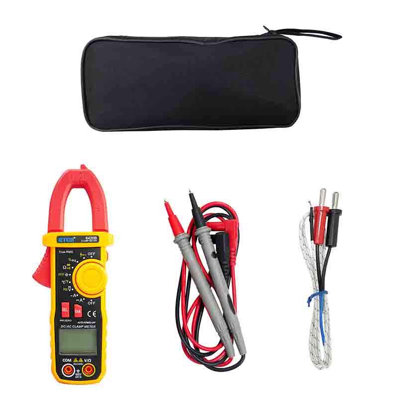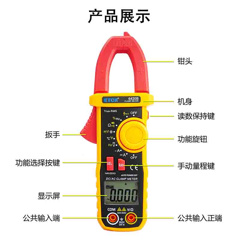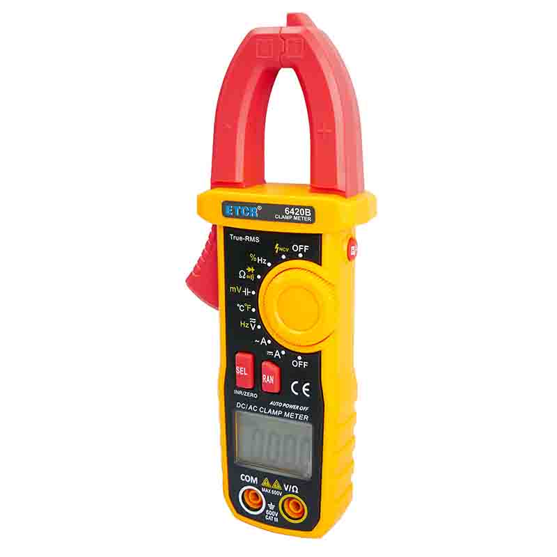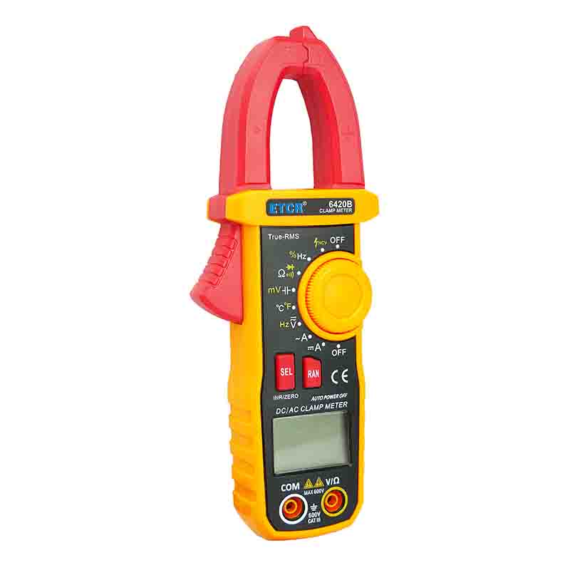 ETCR6420B鉗形萬用表又稱多功能鉗形電流表,是一種便攜式鉗形數(shù)字多用表,可測量直流電壓、交流電壓電流真有效值、電阻、頻率、通斷測試、溫度、二極管正向壓降等參數(shù),電容測量量程擴(kuò)大到10mF且測量大電容速度快。該儀表結(jié)構(gòu)小巧、操作容易、攜帶方便,是電氣測量之理想工具。為用電檢查人員提供一種安全、準(zhǔn)確、便捷的新型電力儀表,是電工安全檢測的必備工具。