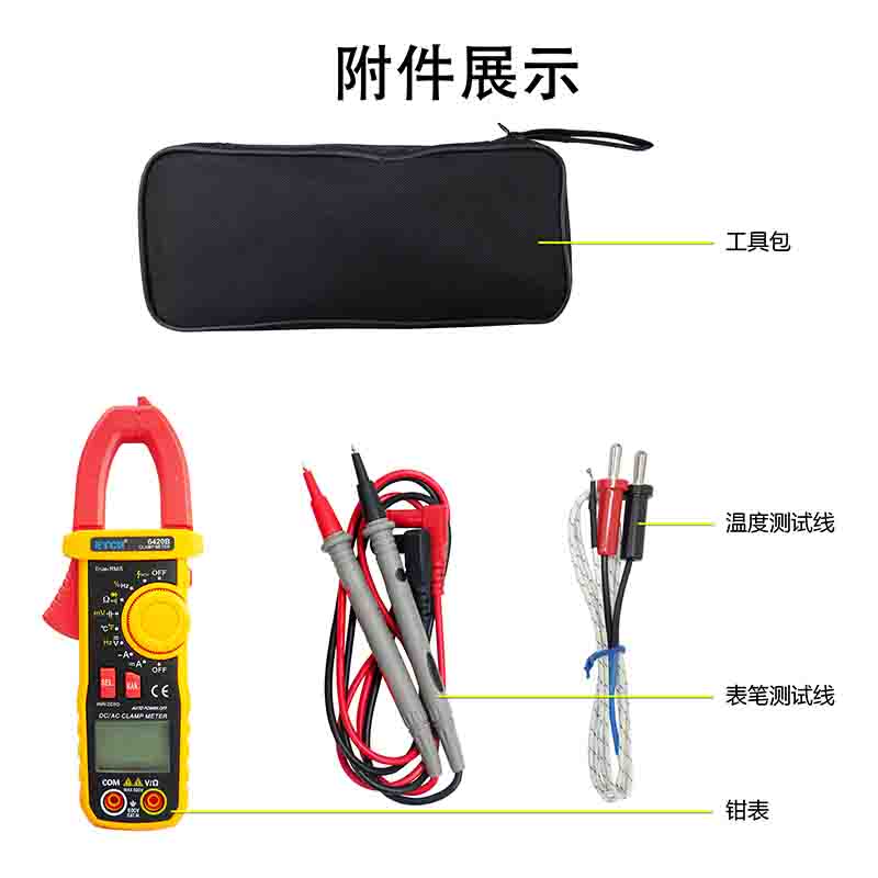 | ETCR6420B鉗形萬用表 | Ф27mm | DC 0mV~600V AC 0mV~600V | DC 0A~600A AC 0A~600A | 0Ω~40MΩ | 0nF~10mF | 100Hz~40MHz | -50°C~1000°C |