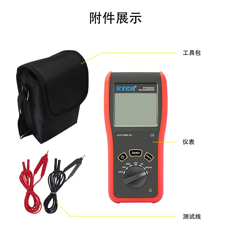 ETCR3630A便攜式毫歐計0.1mΩ~40kΩ0.1mΩ100mALCD屏