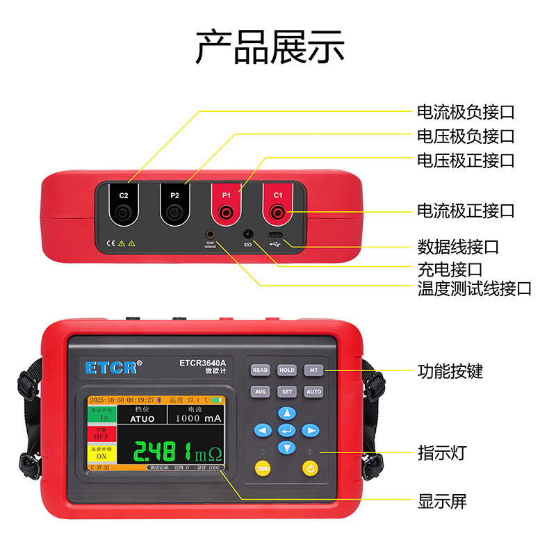 ETCR3640A微歐計(jì)1.0uΩ~40KΩ0.1uΩ1A觸摸彩屏