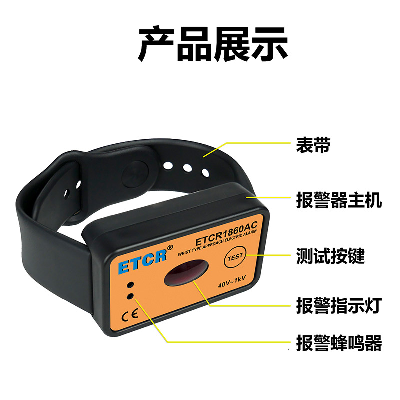 ETCR1860AC-1.jpgETCR1860AC手腕式低壓近電報警器40V~1kV約12個月IP54聲光報警