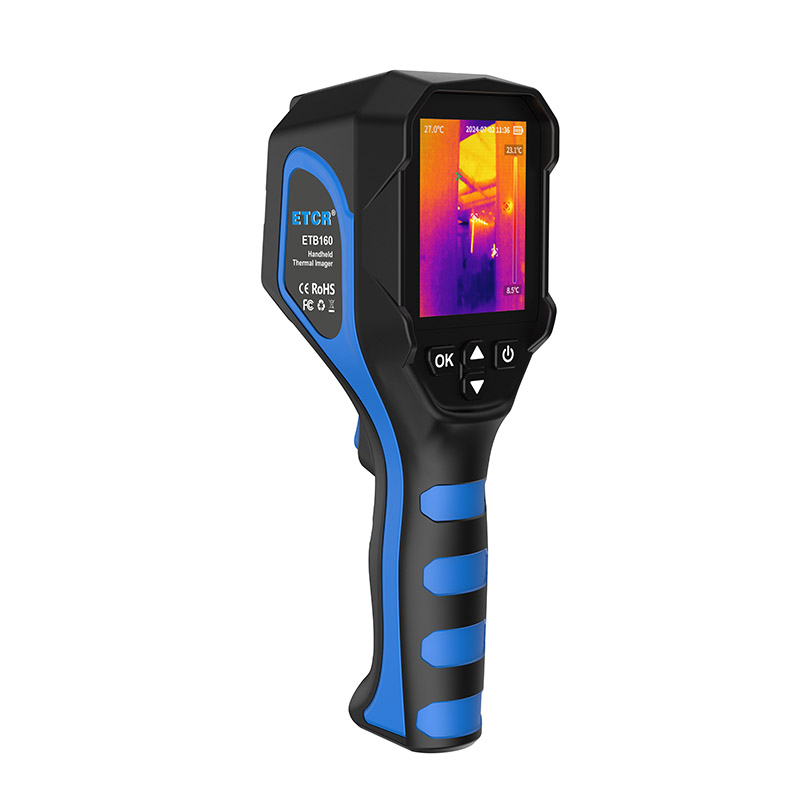 ETB160手持式紅外熱成像儀是一款手持式測溫紅外熱成像儀,又稱熱成像儀、溫度分析儀等,其分辨率為:162×120。是測溫、成像一體的多用途熱像儀;可進(jìn)行實時觀察圖像、溫度分析等功能,是電工和維修人員快速定位故障區(qū)域的理想選擇。