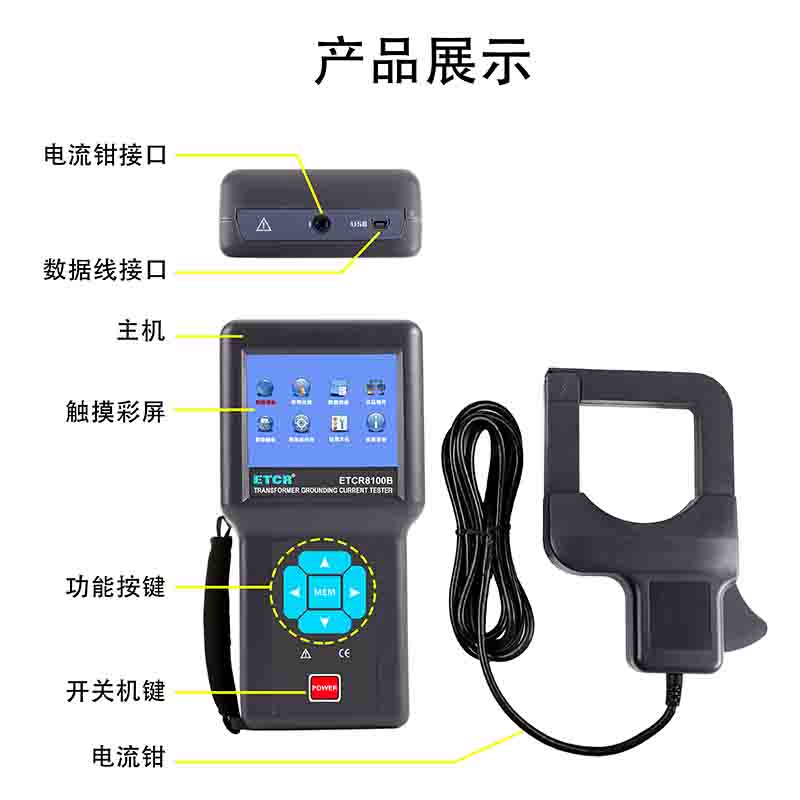 ETCR8100B變壓器鐵芯接地電流測試儀采用高速微處理器,3.5寸彩色觸摸液晶屏,中文界面操作方便快捷。能實時顯示被測電流的大小及波形;具有報警臨界值設(shè)定及報警指示功能;具有日期時鐘及設(shè)置功能;具有自動關(guān)機功能;具有設(shè)定試品編號功能;具有USB接口,可將存儲數(shù)據(jù)導入電腦,儀表可以存儲數(shù)據(jù)及波形100組。