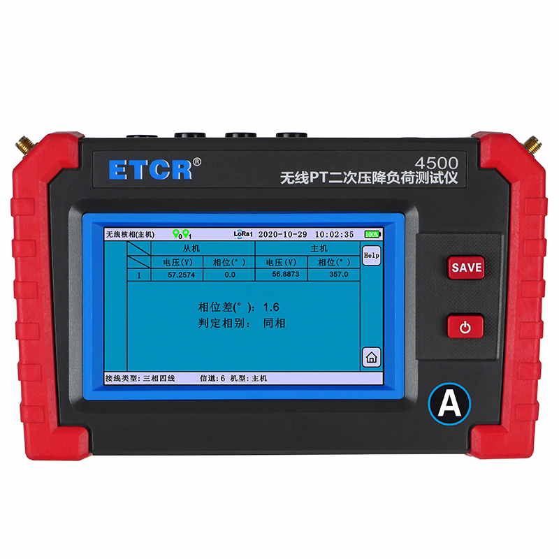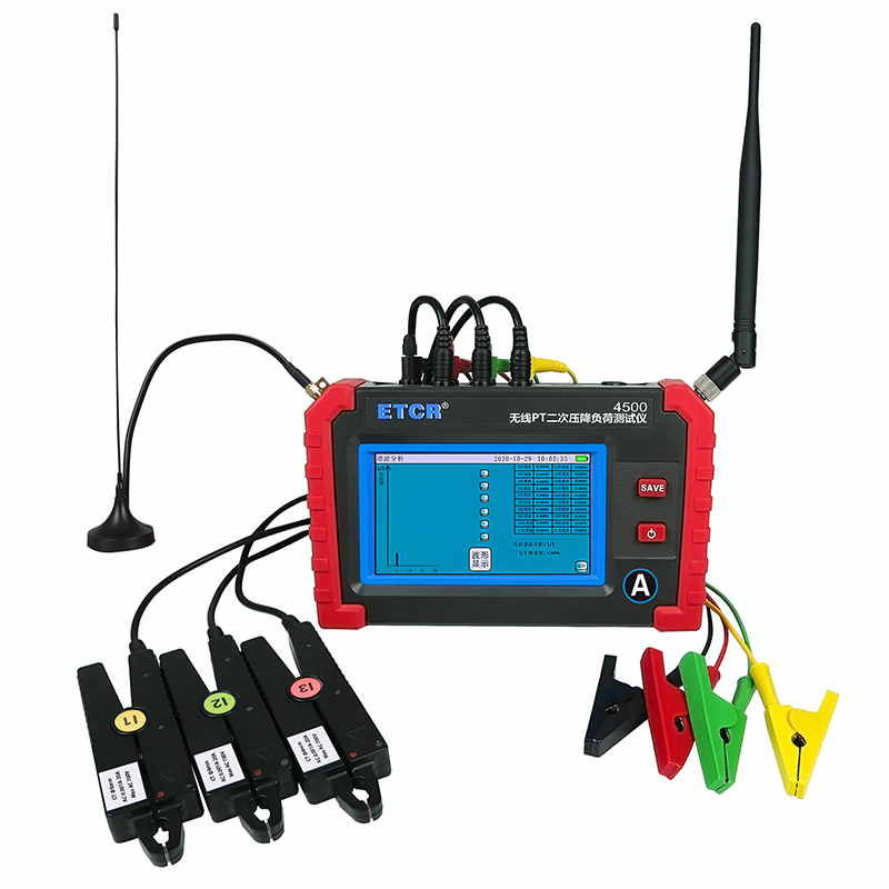 ETCR4500無線PT壓降負荷測試儀又稱PT核相儀、PT負荷測試儀、PT比差測試儀,用于現(xiàn)場在線測試電能計量裝置電壓互感器(以下簡稱 PT)的二次回路壓降,以及PT核相、PT負荷測試、CT負荷測試、三相伏安表、諧波分析等。儀表由2臺手持終端、6個電流鉗、2組電壓測試線等組成,2臺手持終端具有無線通訊及GPS通訊,可互設(shè)為主機或從機,實現(xiàn)同步測量變電站內(nèi)不同位置之間電流、電壓、相位等參數(shù)。